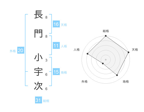 長門 小宇次さんの総格は31画の5点