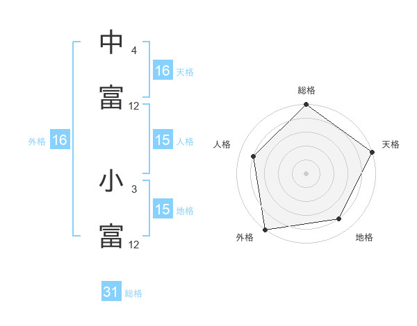 中富 小富さんの総格は31画の5点!