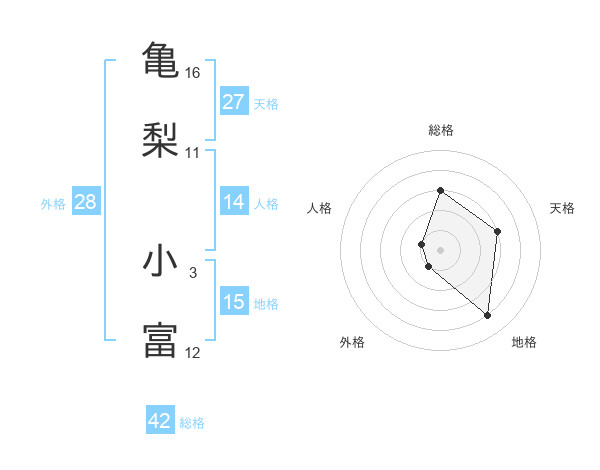 亀梨 小富さんを姓名の画数から五運を鑑定