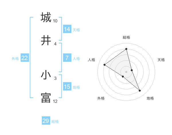 城井 小富さんの総格は29画の4点!