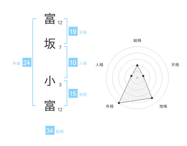 富坂 小富さんの総格は34画の2点!