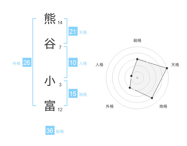 熊谷 小富さんの天格は21画の5点!