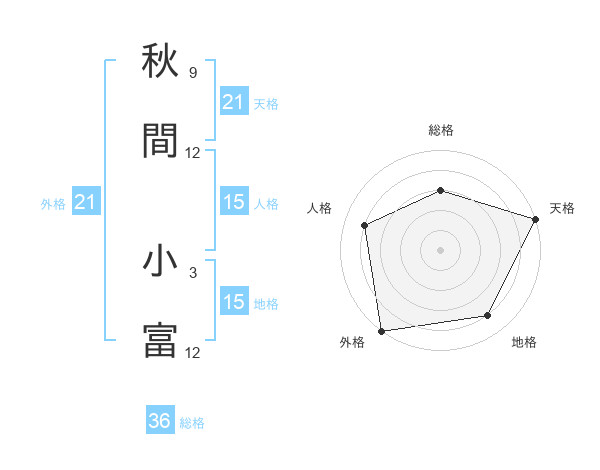 秋間 小富さんの外格は21画の5点!
