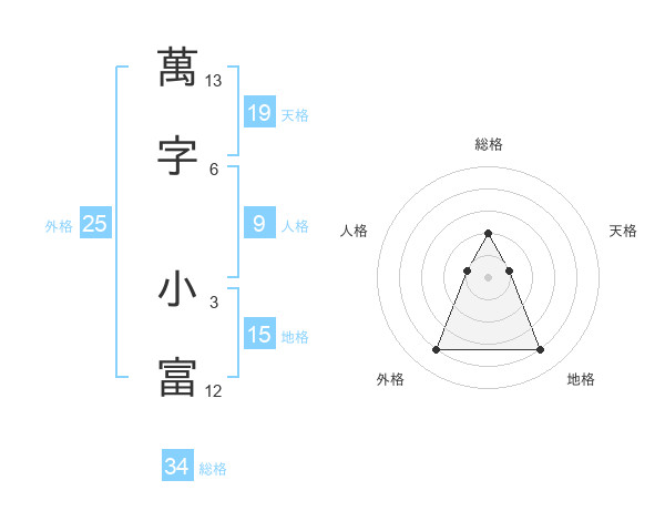 萬字 小富さんの天格は19画の1点!