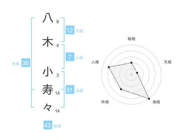 八木 小寿々さんの総格は43画の2点!