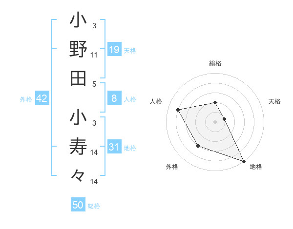 小野田 小寿々さんを姓名の画数から五運を鑑定