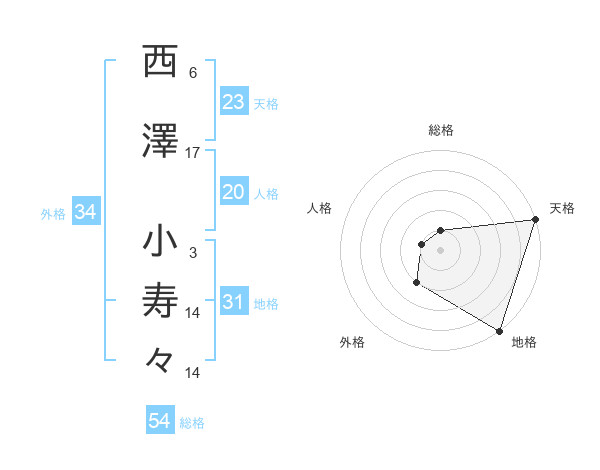 西澤 小寿々さんを姓名の画数から五運を鑑定