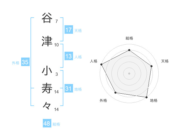 谷津 小寿々さんを姓名の画数から五運を鑑定