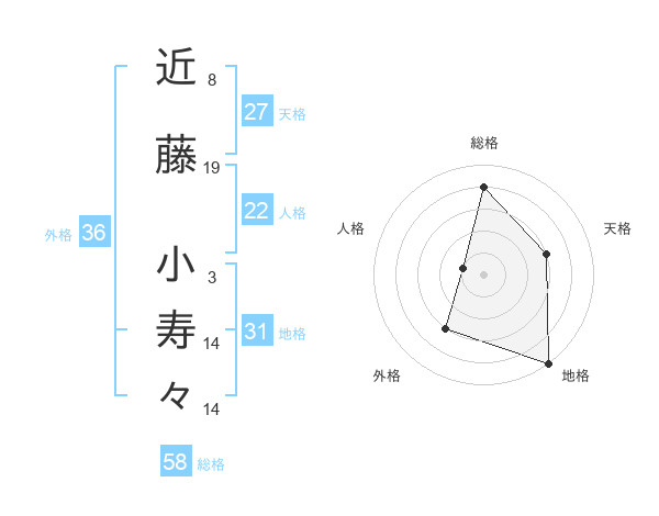 近藤 小寿々さんの総格は58画の4点!