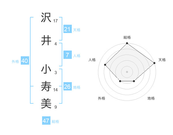 沢井 小寿美さんを姓名の画数から五運を鑑定