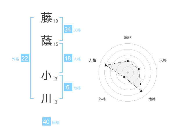 藤蔭 小川さんの総格は40画の2点!
