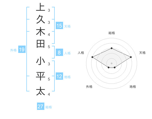 上久木田 小平太さんを姓名の画数から五運を鑑定