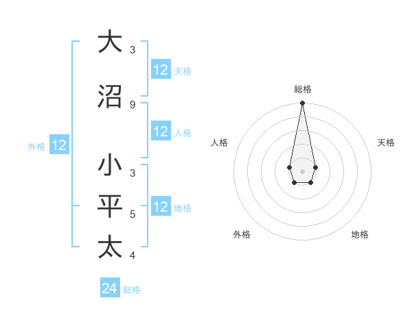 大沼 小平太さんを姓名の画数から五運を鑑定