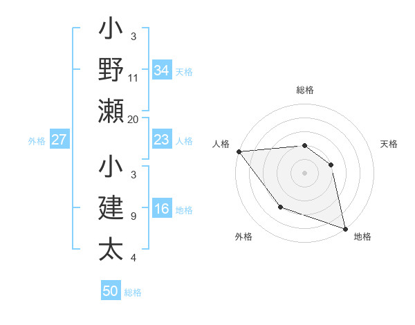 小野瀬 小建太さんの総格は50画の2点!
