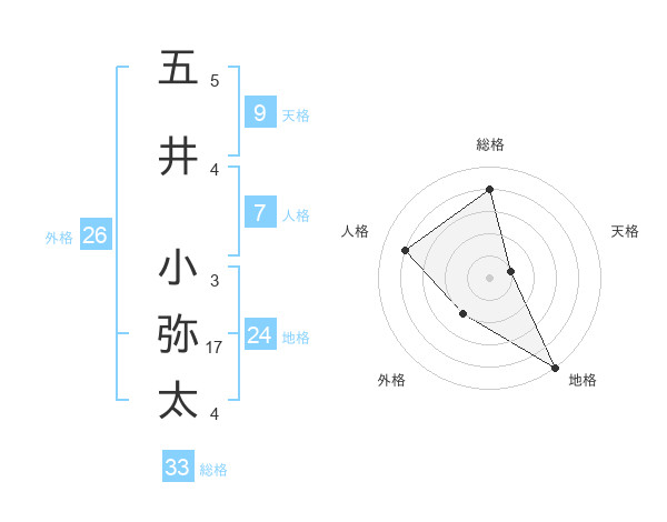 五井 小弥太さんを姓名の画数から五運を鑑定