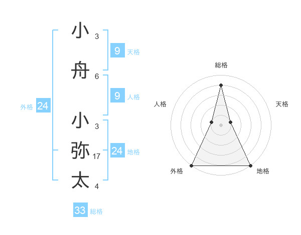 小舟 小弥太さんの総格は33画の4点!