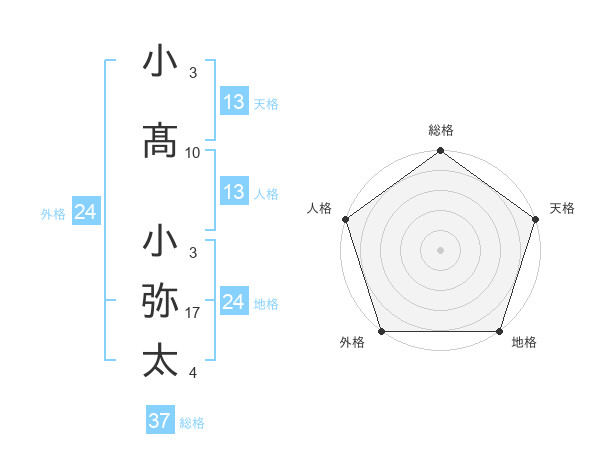 小髙 小弥太さんの総格は37画の5点!
