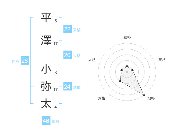 平澤 小弥太さんの総格は46画の1点