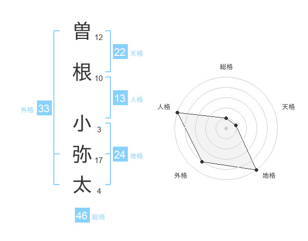 曽根 小弥太さんを姓名の画数から五運を鑑定