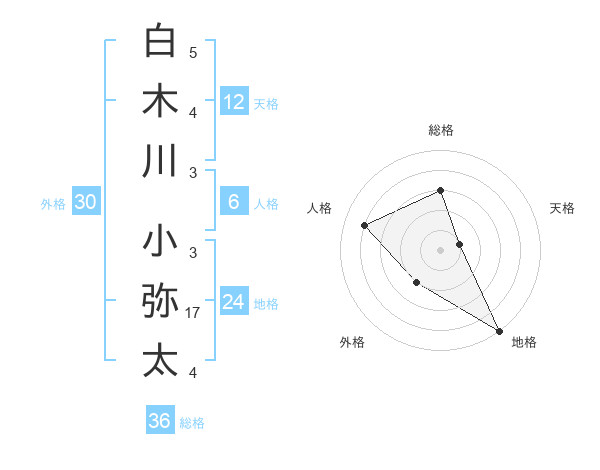 白木川 小弥太さんの総格は36画の3点!