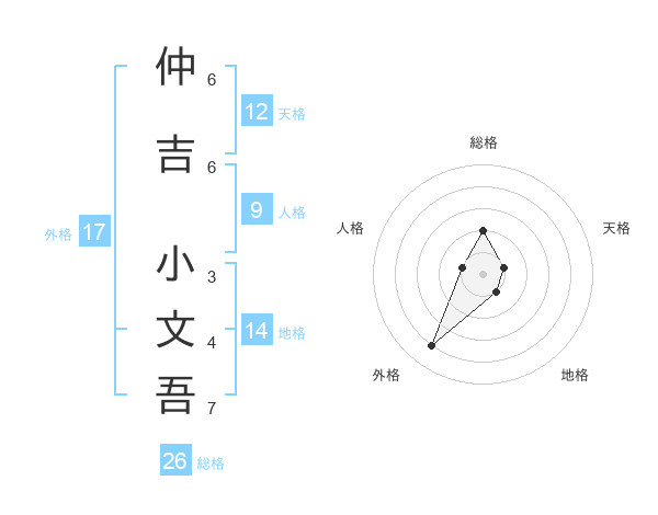 仲吉 小文吾さんの総格は26画の2点!
