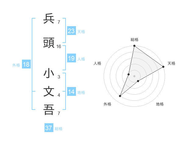 兵頭 小文吾さんの天格は23画の5点!