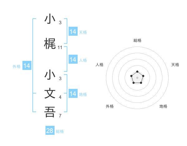 小梶 小文吾さんを姓名の画数から五運を鑑定