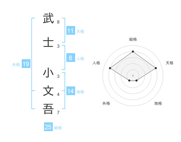 武士 小文吾さんの総格は25画の4点!