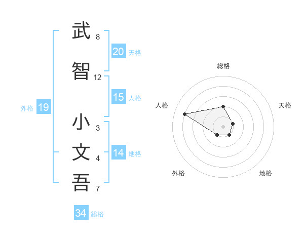 武智 小文吾さんの総格は34画の2点!