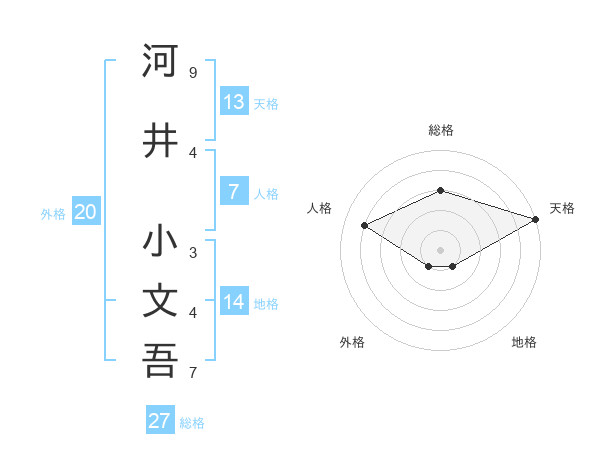河井 小文吾さんを姓名の画数から五運を鑑定