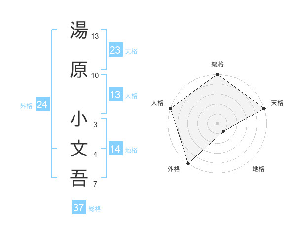 湯原 小文吾さんを姓名の画数から五運を鑑定