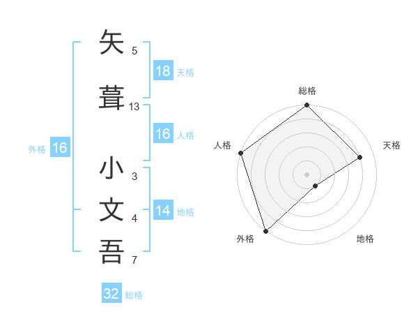 矢葺 小文吾さんを姓名の画数から五運を鑑定