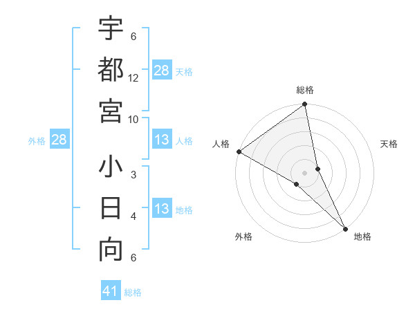 宇都宮 小日向さんの総格は41画の5点!