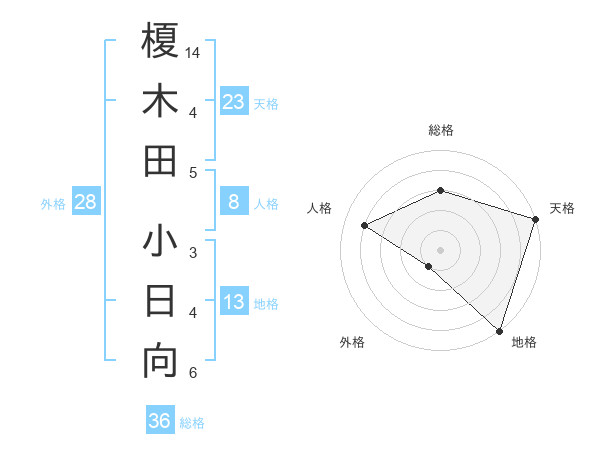 榎木田 小日向さんを姓名の画数から五運を鑑定
