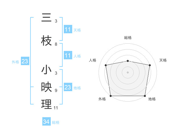 三枝 小映理さんを姓名の画数から五運を鑑定