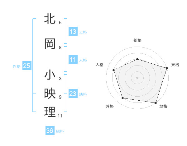 北岡 小映理さんを姓名の画数から五運を鑑定