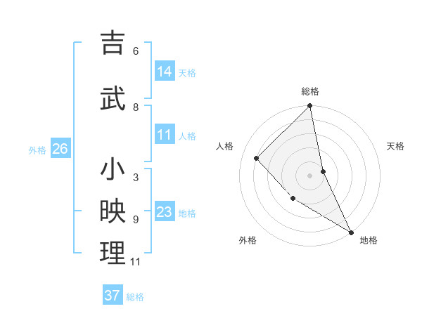 吉武 小映理さんの総格は37画の5点!