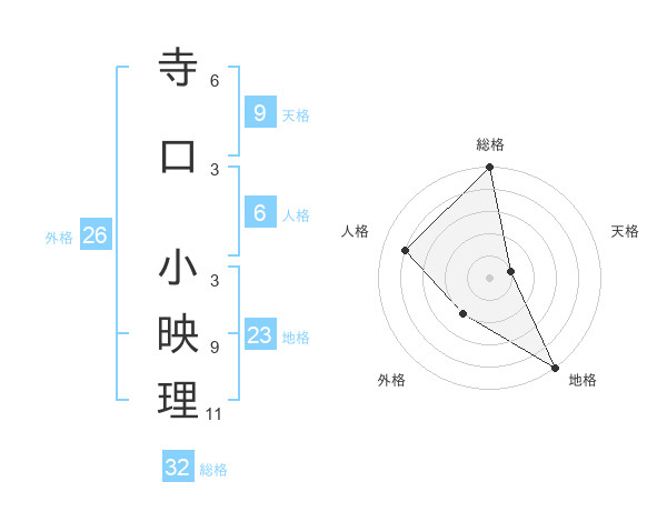 寺口 小映理さんの総格は32画の5点!