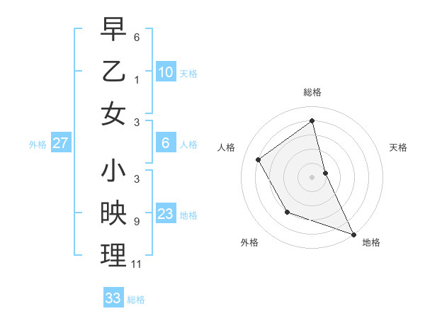 早乙女 小映理さんを姓名の画数から五運を鑑定