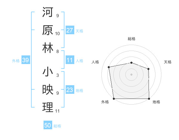 河原林 小映理さんを姓名の画数から五運を鑑定