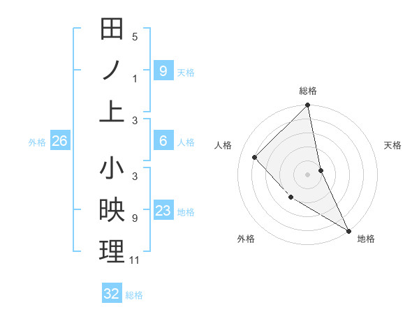 田ノ上 小映理さんを姓名の画数から五運を鑑定