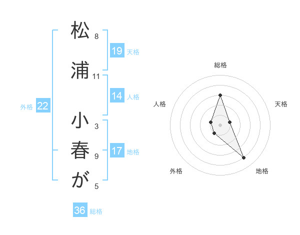 松浦 小春がさんを姓名の画数から五運を鑑定