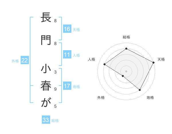 長門 小春がさんの天格は16画の5点!
