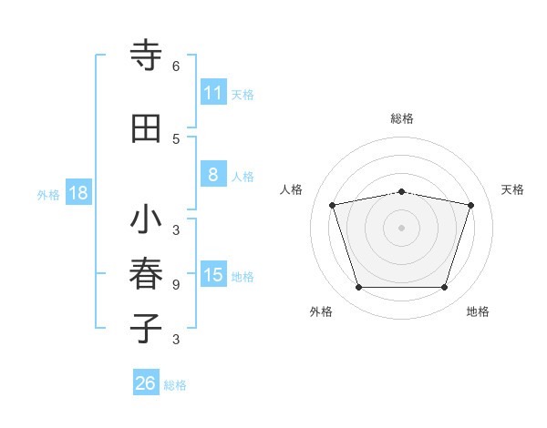 寺田 小春子さんの総格は26画の2点!