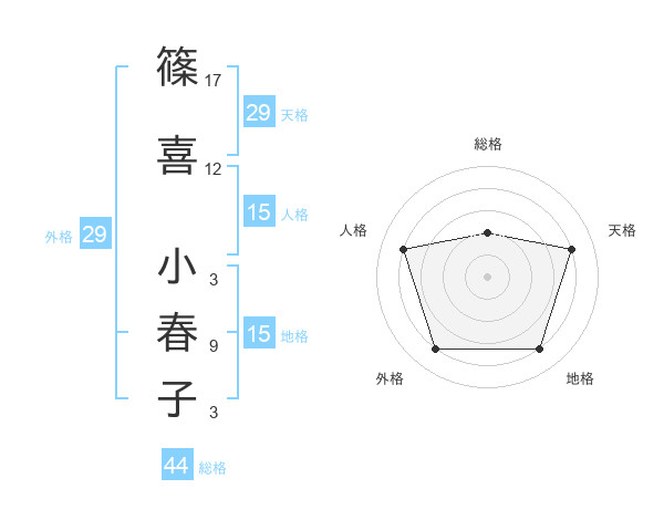 篠喜 小春子さんを姓名の画数から五運を鑑定