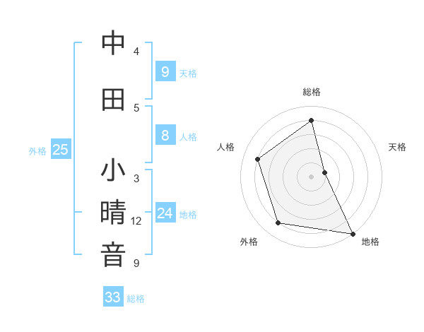 中田 小晴音さんを姓名の画数から五運を鑑定