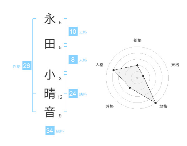 永田 小晴音さんを姓名の画数から五運を鑑定