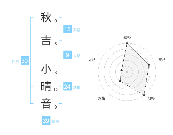 秋吉 小晴音さんの総格は39画の5点!