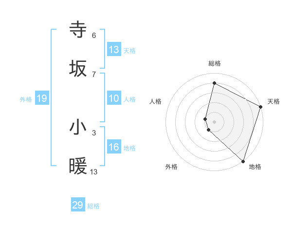寺坂 小暖さんの総格は29画の4点!