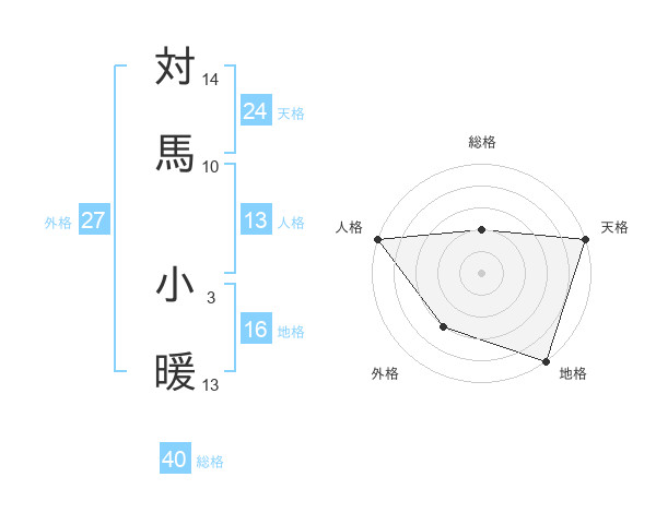 対馬 小暖さんの天格は24画の5点!
